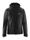 Vattert, vind- og vanntett jakke med kortlomme på armen. Vattert stilren jakke. Integrert snølås, to lommer på armen....