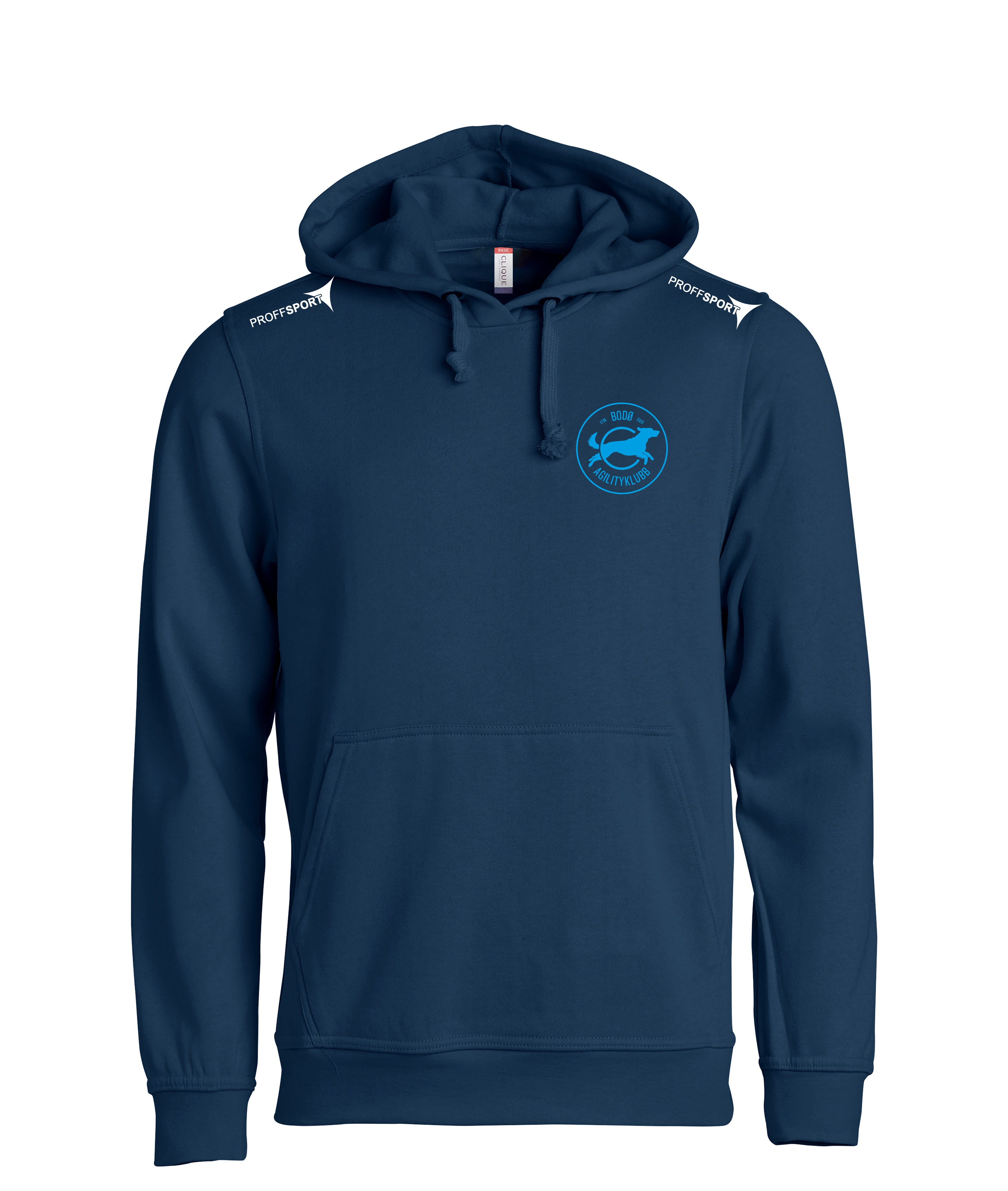 Hettegenser i unisexmodell. Basic Hoody har ribb i mansjett og nederkant, børstet innside og snor i hetten. Kengurulomme med praktisk løsning for mobiltelefon.