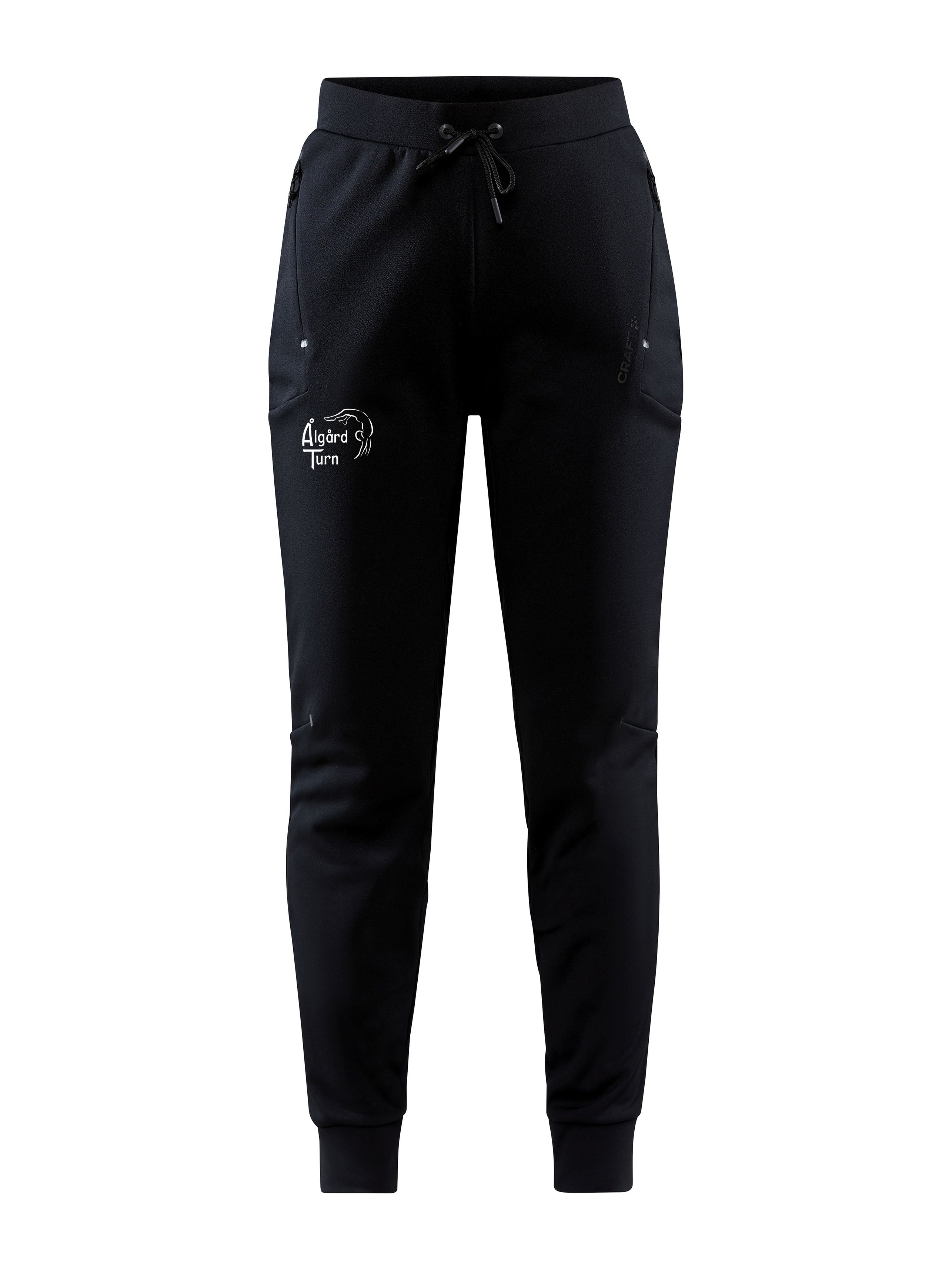 Myk joggebukse produsert av resirkulert polyester. To lommer med glidelås.