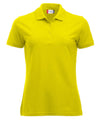 Piké til dame med to jaquardstriper på kragen. Knappestolpe med 3 knapper går ton-i-ton og splitt i sidene....