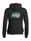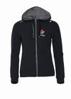 Sweatshirt med hette til dame. Glidelås og lomme i front. Rib i mansjett og nederkant. Tilpasset for hodetelefoner....