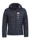 Moderne jakke i fuskedun. Avtagbar hette og tre utvendige lommer med glidelås. To innvendige lommer. Tilpasset for hodetelefoner....