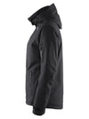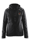 Vattert, vind- og vanntett jakke med kortlomme på armen. Vattert stilren jakke. Integrert snølås, to lommer på armen....