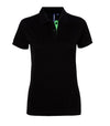 Piké til dame med fargekontrast i knapper, nakkebånd, knappestolpe og splitt i sidene. Stående skjortekrage og knappestolpe med...