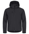Softshelljakke med avtagbar hette, tre ytterlommer med glidelås og to innerlommer. Ton-i-ton glidelåser. Borrelås nederst på ermet.Leveres med...