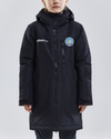 Vattert, vind- og vannavvisende jakke som er perfekt til oppvarming eller som representasjonsjakke. Avtagbar hette, brystlomme med glidelås...