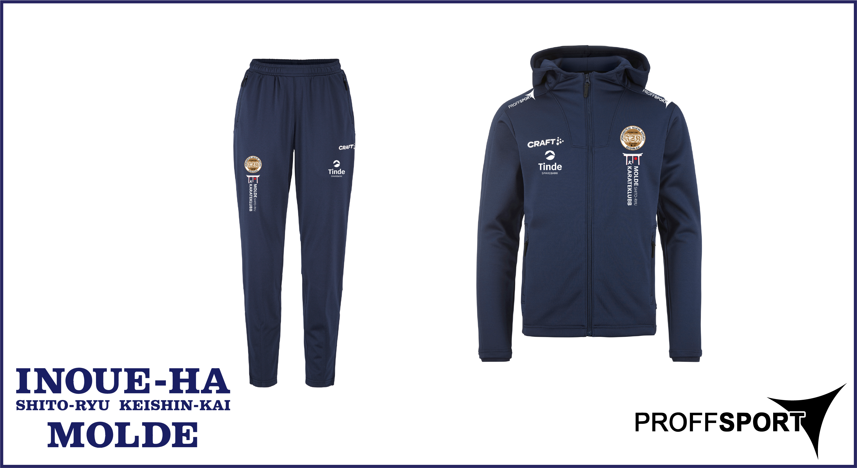 hettejakke i og bukse i marine blå.