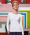 Langermet T-shirt for dame i 100% produsert med 100% økologisk bomull. Moderne passform med rund hals og sidesøm. Produsert i...