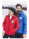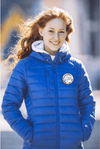 Moderne damejakke i fuskedun. Avtagbar hette og tre utvendige lommer med glidelås. To innvendige lommer. Tilpasset for hodetelefoner....