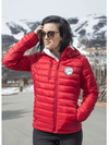 Moderne herrejakke i fuskedun. Avtagbar hette og tre utvendige lommer med glidelås. To innvendige lommer. Tilpasset for hodetelefoner....